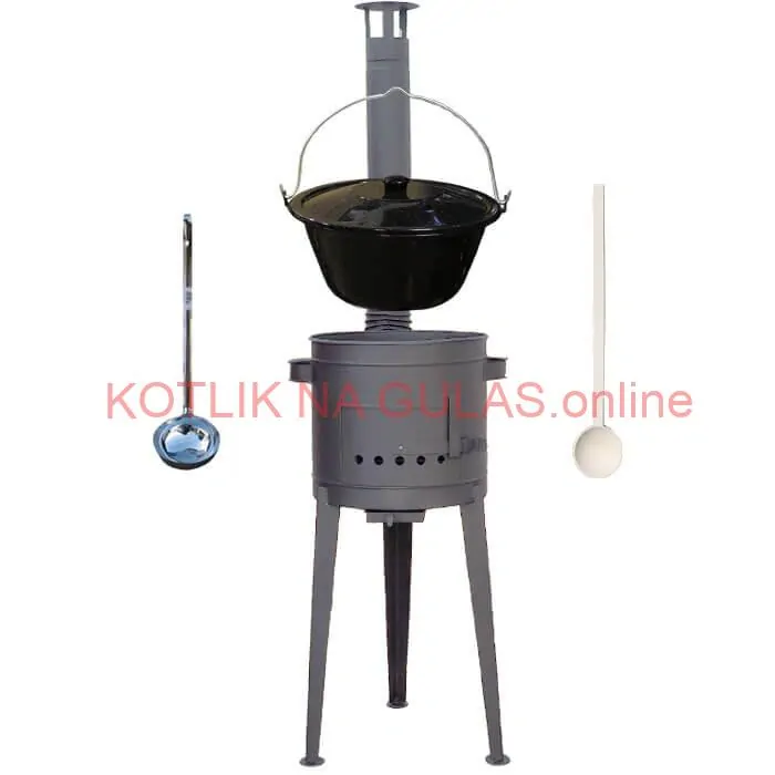 Kotlíková súprava na varenie gulášu a iných pochutín v záhrade, v prírode pre rodiny, rôzne spoločenské akcie a posedenia pri dobrom guláši. Pri tejto kotlíkovej súprave bude pôžitok variť guláš v záhrade alebo v prírode. Kotlina obsahuje vysoké nožičky až 53 cm.
