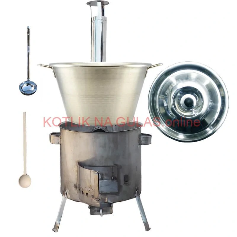 Kotlíková súprava na outdorové varenie gulášu a rybích polievok v prírode, v záhrade alebo v otvorenej kuchyne, predovšetkým pre chalupárov, chatárov, do kempu a na táborenie. Pri použití koša v kotlíku na varene mäsa, jaterníc, klobás, zeleniny do polievky a konzerv.