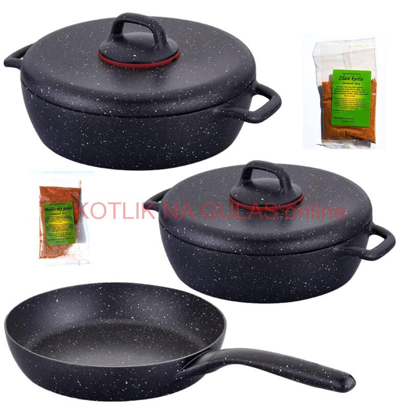 Sada hrncov s pokrievkou + panvica + korenie Classic Plus Volkanit