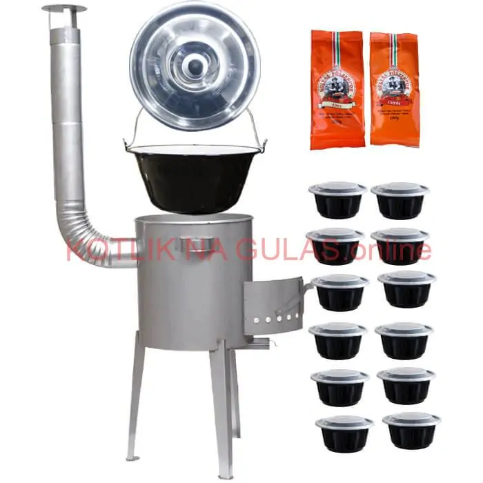 - Smaltovaný kotlík 22 L (1,2 mm) + nerezová kotlina 42 cm LUXUS + misky 12 ks + 2 x korenie na guláš 100 g